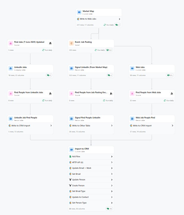 Access to Job Signals across the internet and the community; - Daily update of live leads - Hiring business - Job Url - Job Description - Location - Hiring Manager - Contact Email - Contact Mobile Updated in real time in a shared Google Sheet